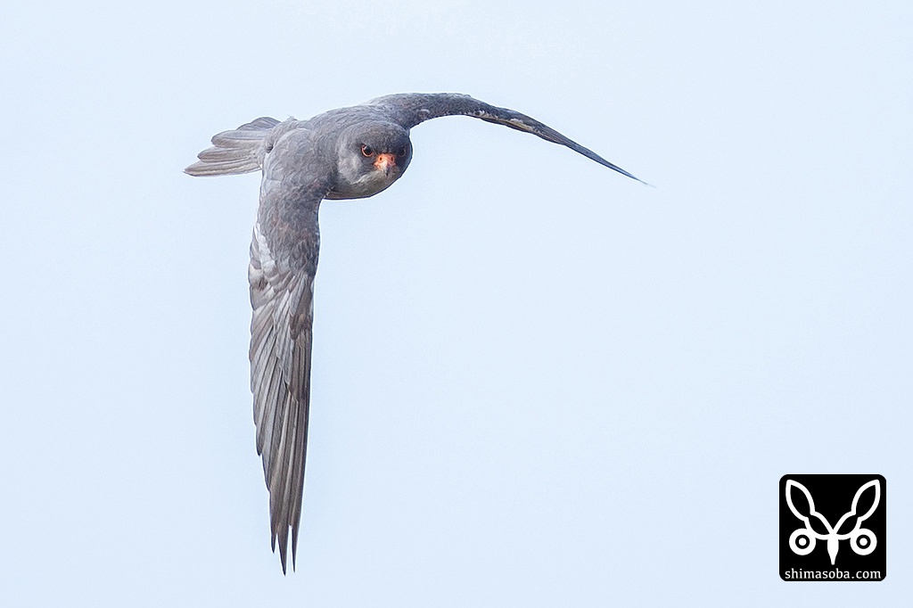 アカアシチョウゲンボウの成鳥オスの背面は美しい青灰色。