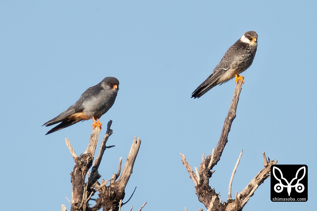 - アカアシチョウゲンボウ成鳥のオスとメス(2018年10月24日)