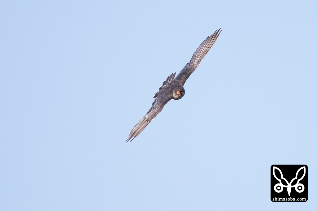 アカアシチョウゲンボウ成鳥オスの背面は一面に青灰色。