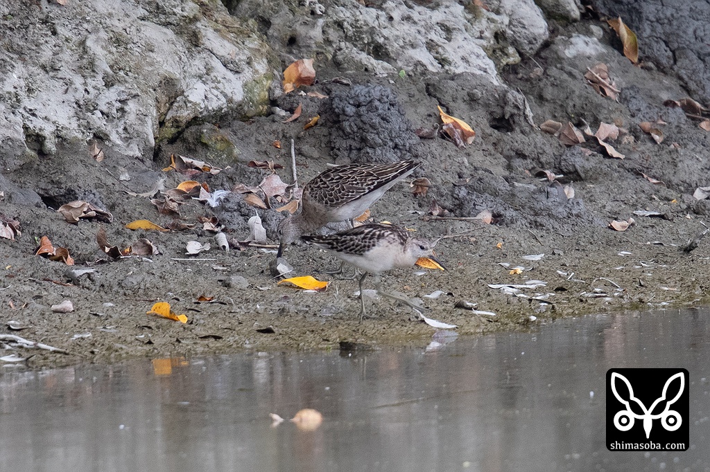 三角池にエリマキシギの幼鳥オスとメスがいました。