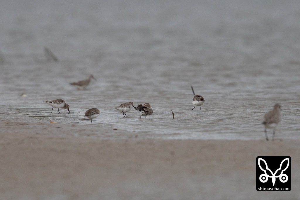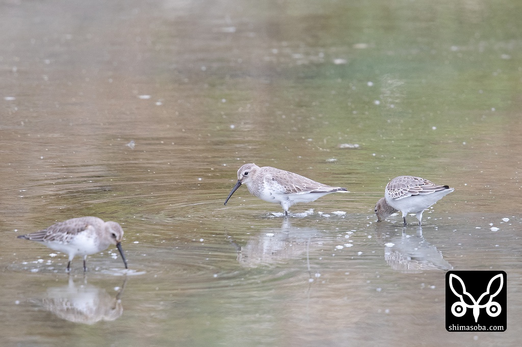 具志干潟には、ダイシャクシギやチュウシャクシギ、ダイゼン、キアシシギ、ハマシギ、メダイチドリのほか、オニアジサシやミサゴ、ダイサギやコサギなど魚食の鳥たちが集まっていました。