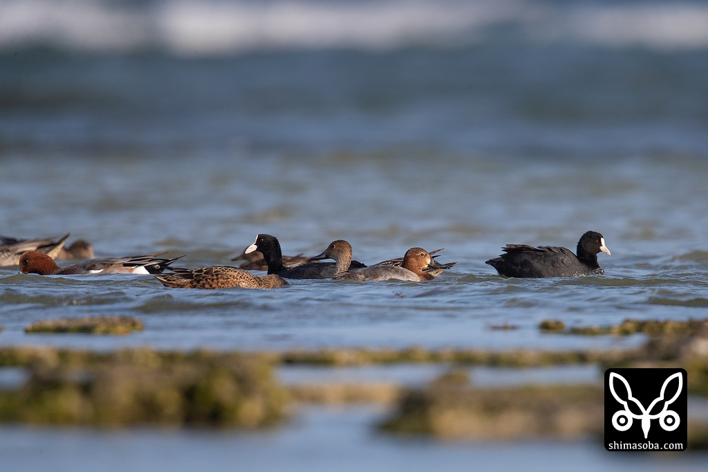 ホシハジロ、オオバン、ヒドリガモ、オナガガモ