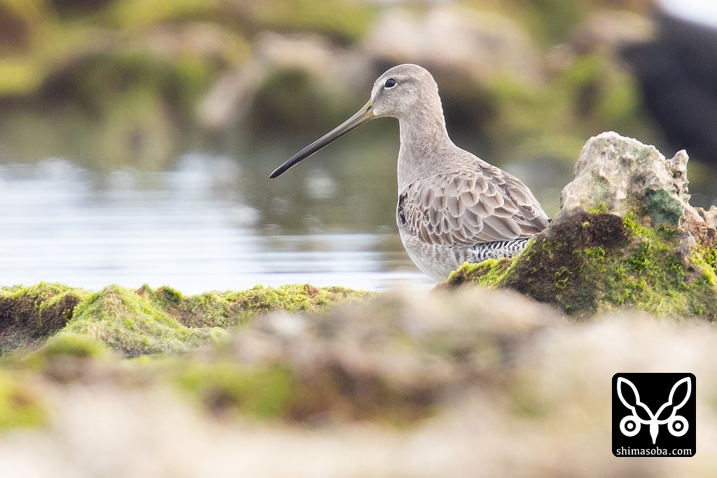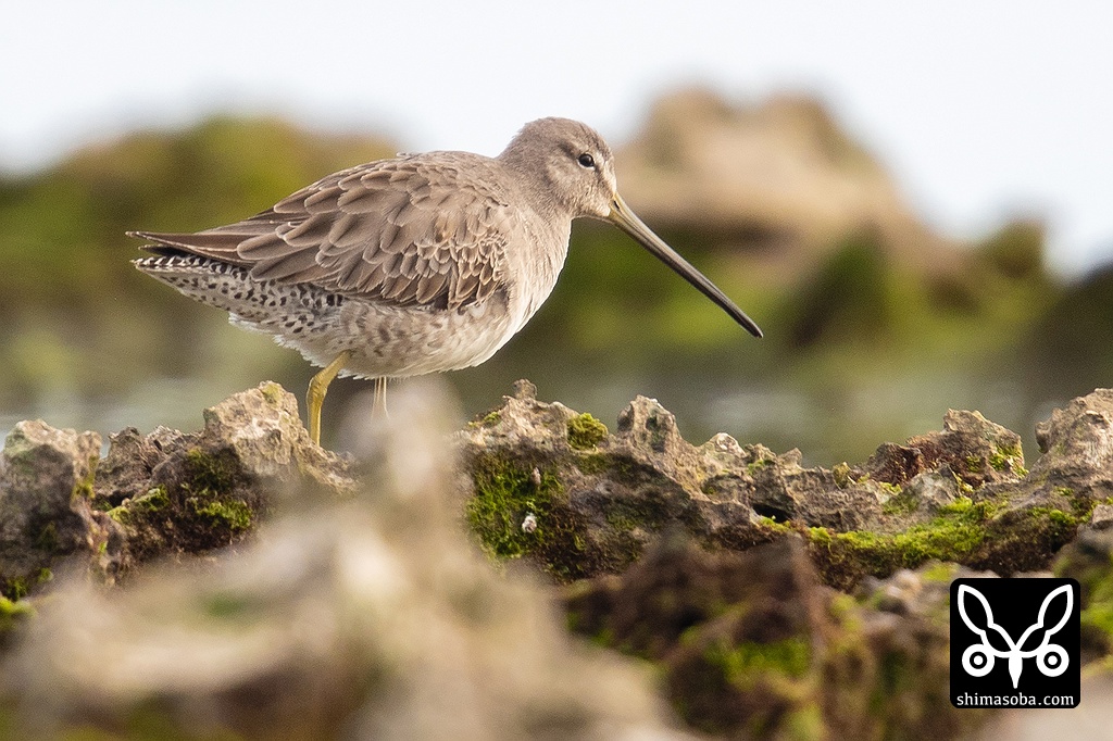 アオアシシギより一回り小さく地味なオオハシシギ。