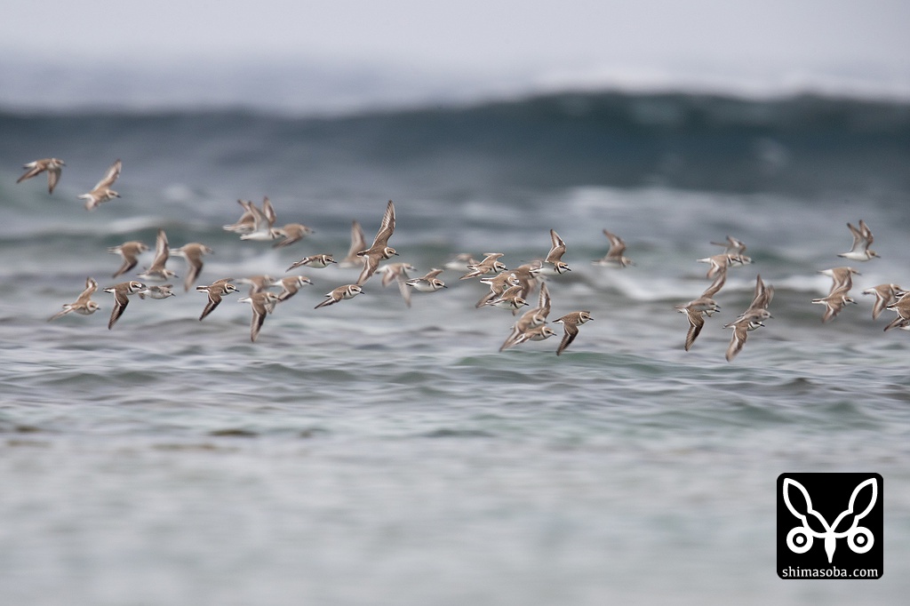 海岸に出てみると、シロチドリ100羽ほどの群れが水面を勢いよく飛び回っていた。何かに追われているのかのようでしたが、猛禽などの姿はなし。ハマシギやキョウジョシギ、アオアシシギもいましたが反応はなく採餌していた。なんだったんだろう。