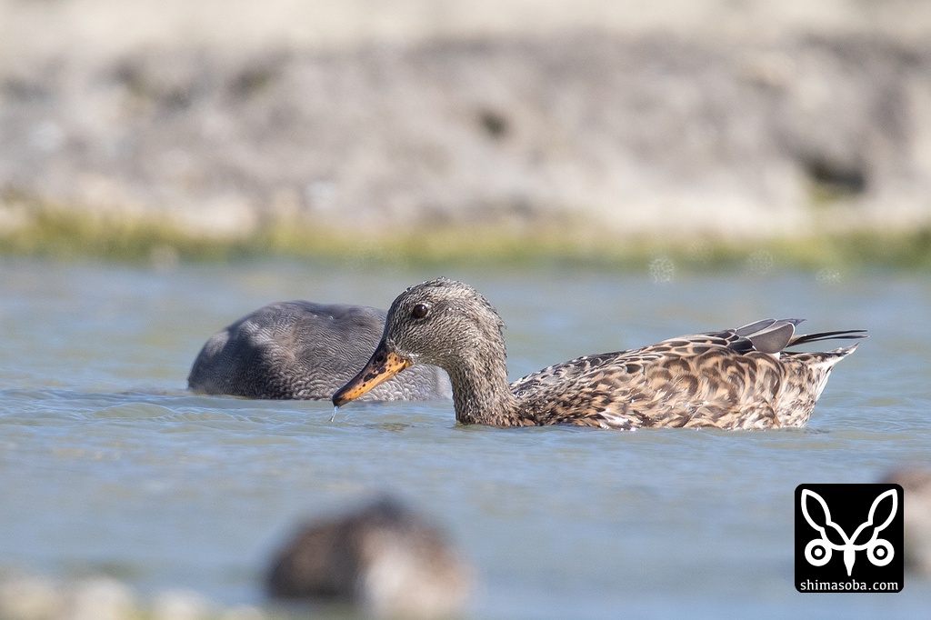 オカヨシガモのメス。上のオスと行動を共にしていたが、こちらはまだ非生殖羽。