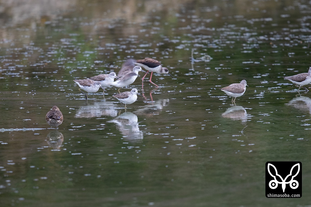 アオアシシギ、セイタカシギともに20羽前後いた。