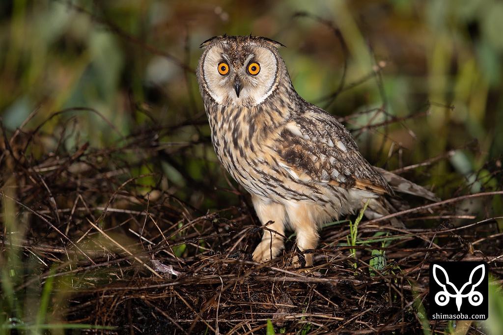 夜間、気晴らしに農道をドライブしていると見慣れないシルエットが視界に入りました。懐中電灯で照らしてみるとなんとトラフズク!! 地面に降りていることもあり、すっかりコミミズクだと思っていましたが、トラフズクでした。訂正します。