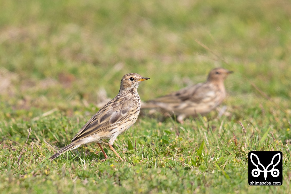 ムネアカタヒバリ冬羽から夏羽へ移行中。2羽ともメスと思われます。