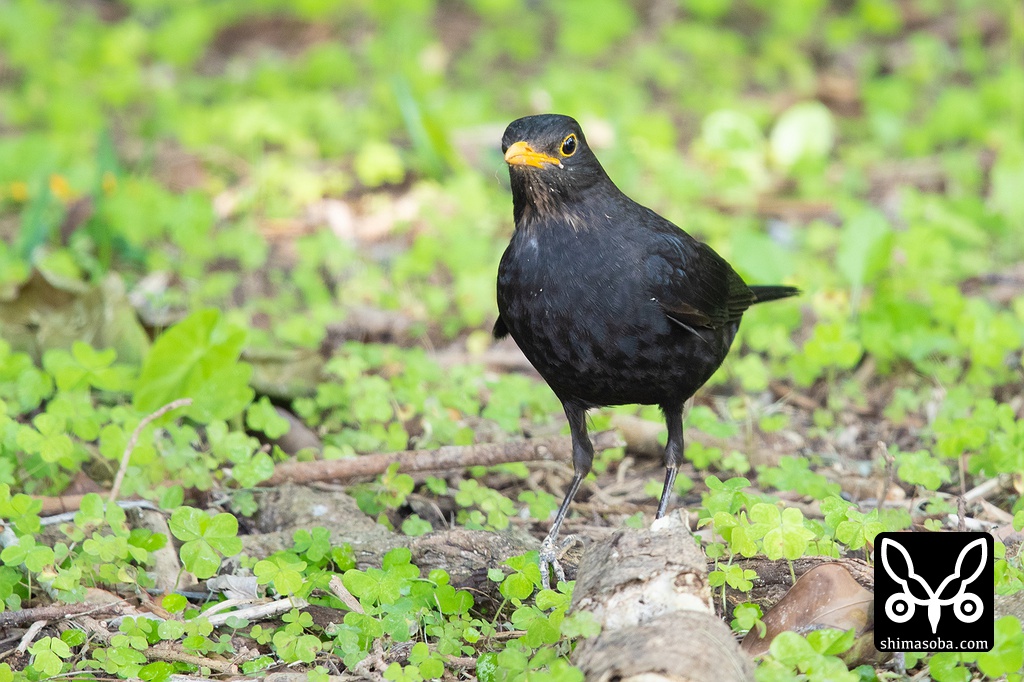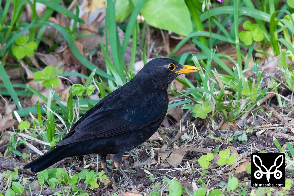 クロウタドリは美しいオスの成鳥でした。