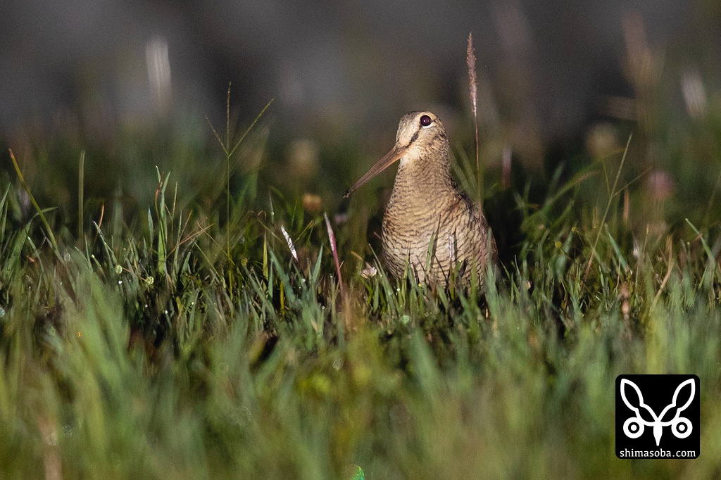 芝生で採餌していたヤマシギ。3羽で移動しながら土中の獲物を探し出していた。