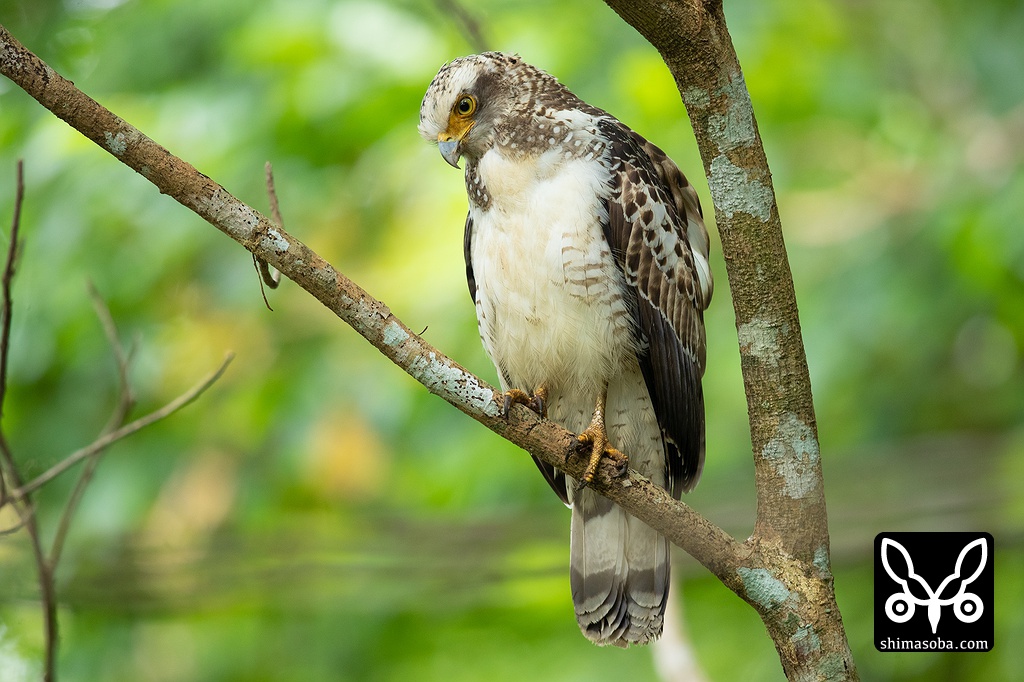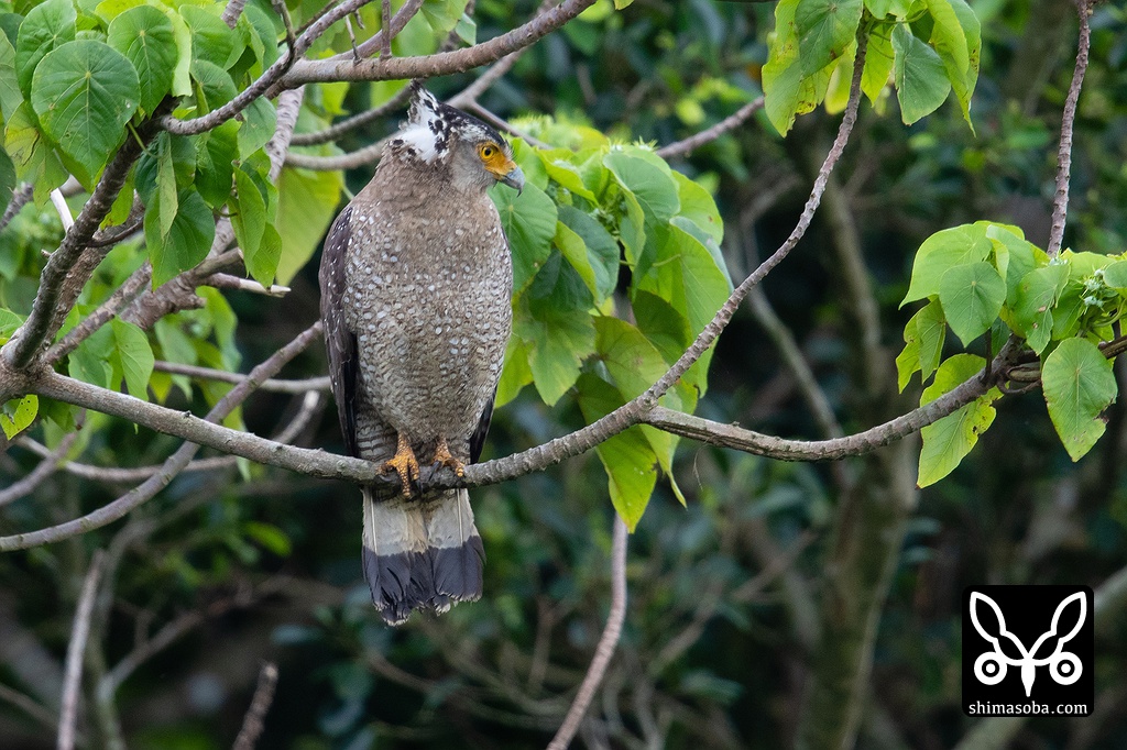 昨年生まれのカンムリワシ。2暦年目のこの時期から成鳥の羽に換羽が始まり、秋ごろには成鳥と変わらない姿になります。大変なれた個体でした。