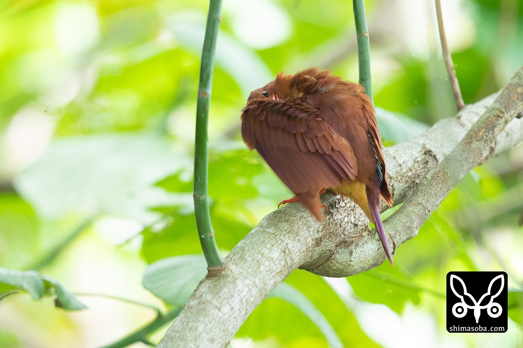 木の陰にリュウキュウアカショウビンの姿がありました。緑の中で美しいですね。