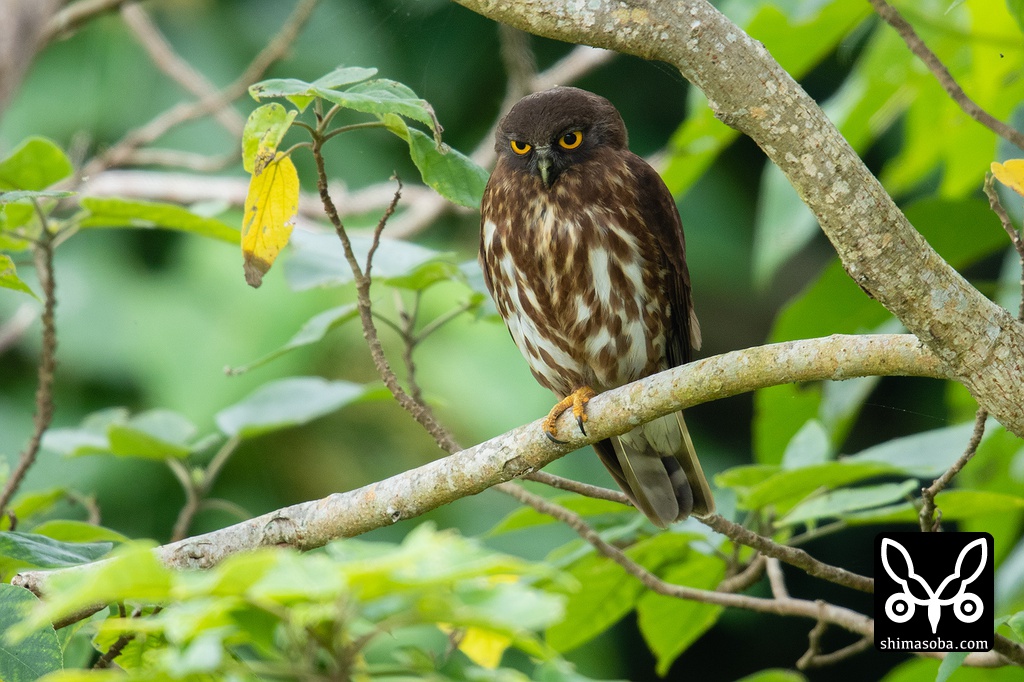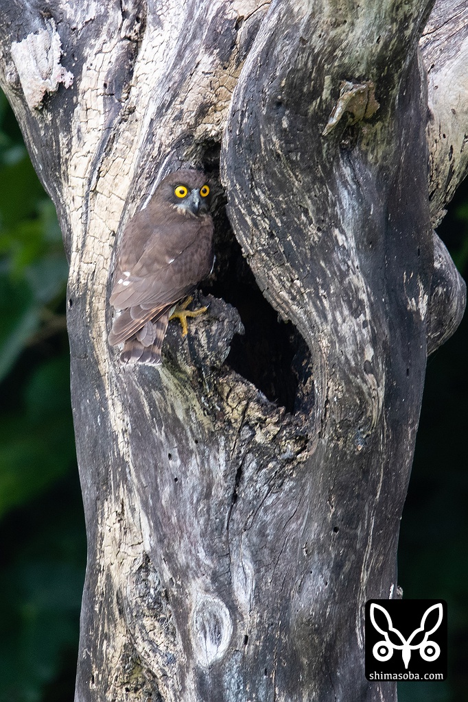 巣に戻ってきたアオバズクのメス。