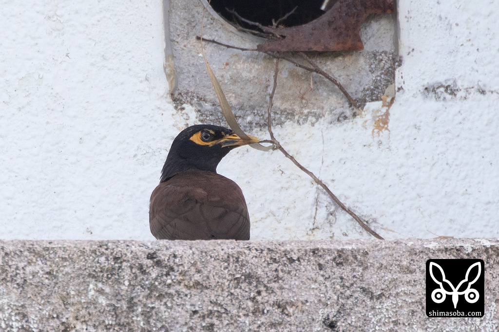 換気口で営巣するインドハッカ。