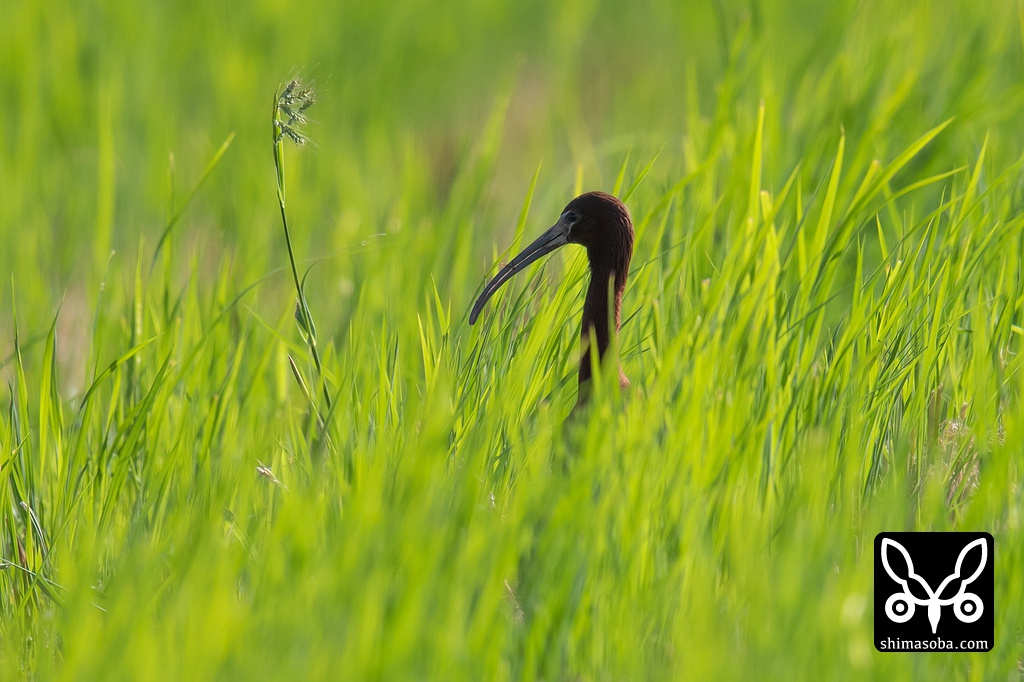 ブロンズトキは意外と小さいので稲の陰に隠れてたまに頭が見えるくらいでした。