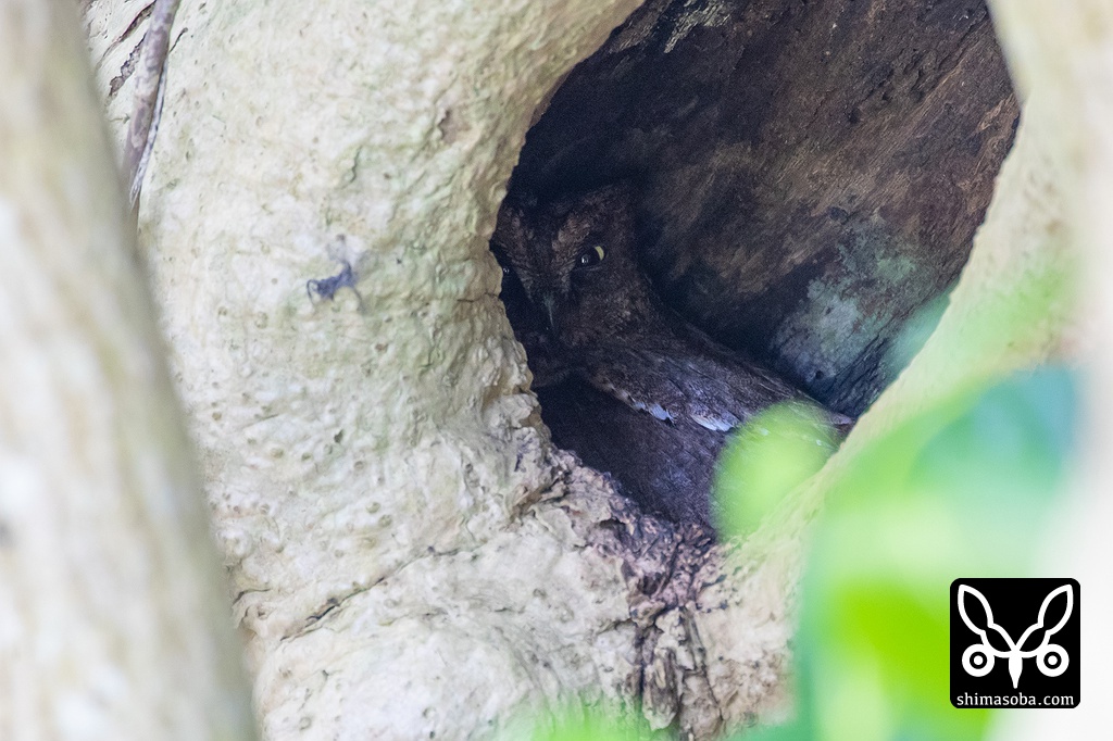 子育て中のリュウキュウコノハズクを石垣島でバードウオッチングガイドを営むスポッターさんに教えてもらいました。ヒナは一人っ子ので孵化して間もないとのことです。