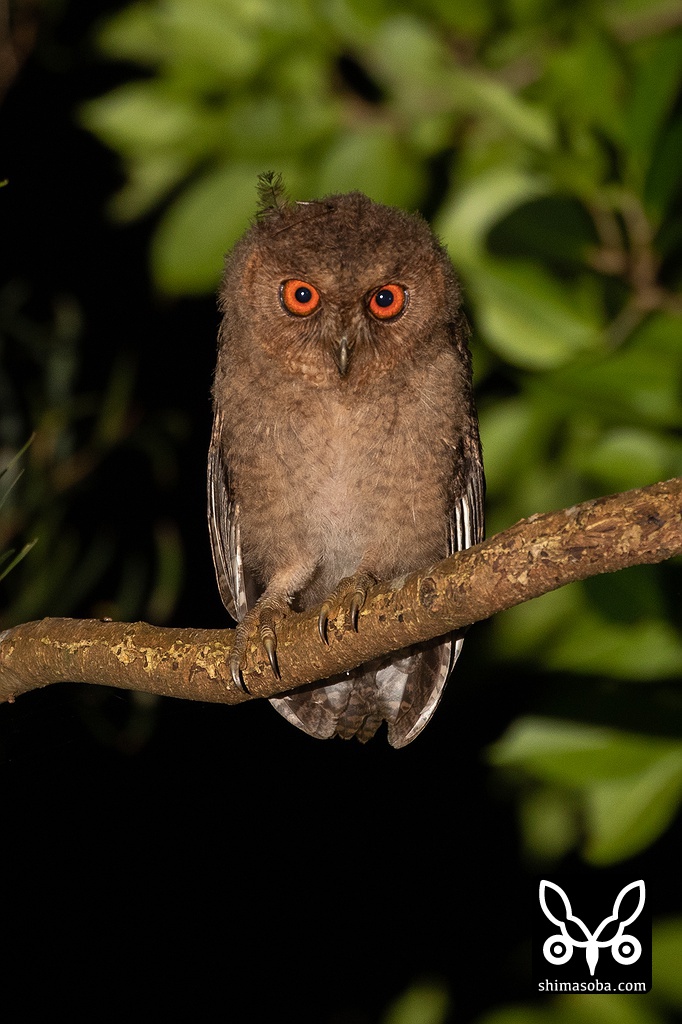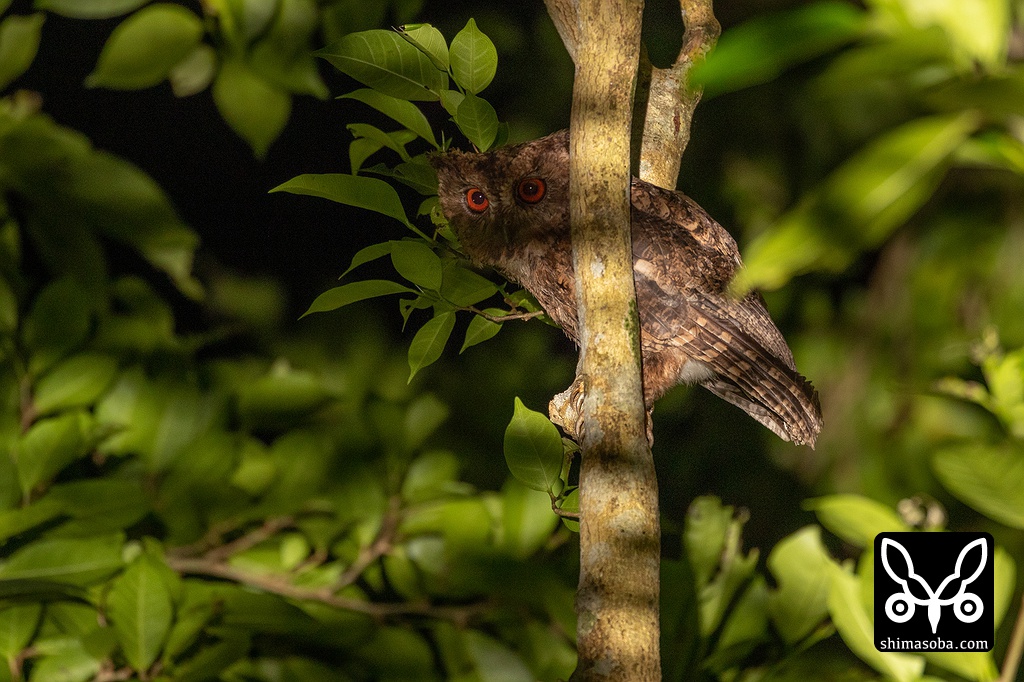 夜のやんばるでオオコノハズクとコノハズクの巣立ちビナほか