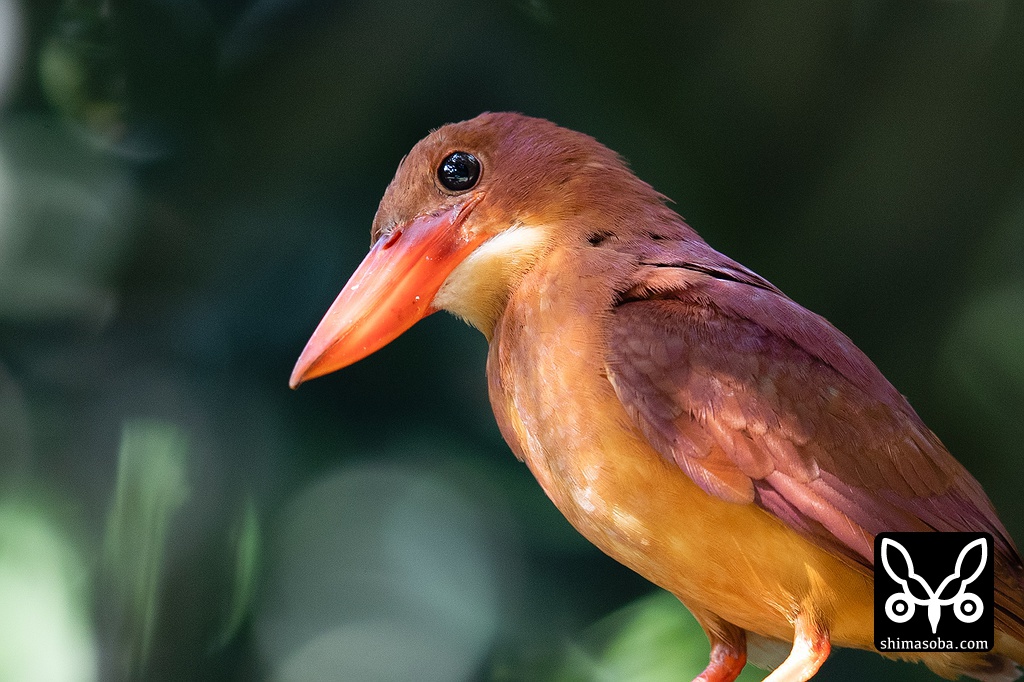 冬羽への換羽が始まったアカショウビン成鳥。顔のあたりから換羽が始まっています。