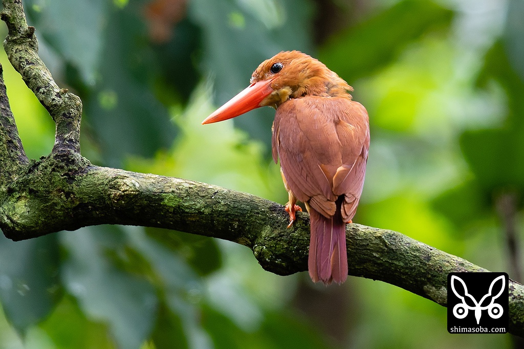 アカショウビンは繁殖期最盛期に比べたらあまりさえずらないのですが、この個体は、たまにさえずっていた。