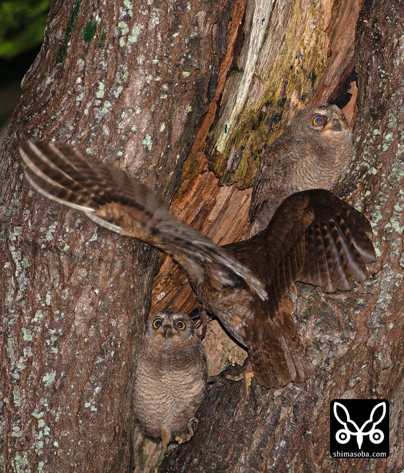 リュウキュウコノハズク巣立ち前夜 2012年6月23日(旧暦では2012年5月4日) この翌日、2羽とも元気に巣立ちました!! リュウキュウコノハズク 親鳥から餌をもらうコノハズクのヒナ。獲物はアシダカグモです。 リュウキュウコノハズク 羽ばたきの練習をしています。 Category:野鳥Tagの付いた記事:EF600mm F4L IS USM / リュウキュウコノハズク関連記事まだいたセアカモズ さえずり練習中(2017年2月19日)間もなく巣立ちのアオバズク(2017年6月28日)リュウキュウツミの子育て順調(2015年8月5日)越冬ウグイス、アカガシラサギ 春のオジロトウネン(2025年3月15日)タシギとチュウジシギの識別練習(2017年9月24日)ハリオシギ、チュウジシギ初認!!(動画あり)(2025年8月11日)救護カンムリワシの放鳥(2024年8月2日)石垣島でバードウオッチング(カンムリワシ、コハクチョウ編)(2017年1月4日)石垣島にブロンズトキ19羽参上!!(動画あり)(2021年4月2日)第5回石垣島ジシギ合宿開催!!(2025年9月28日)