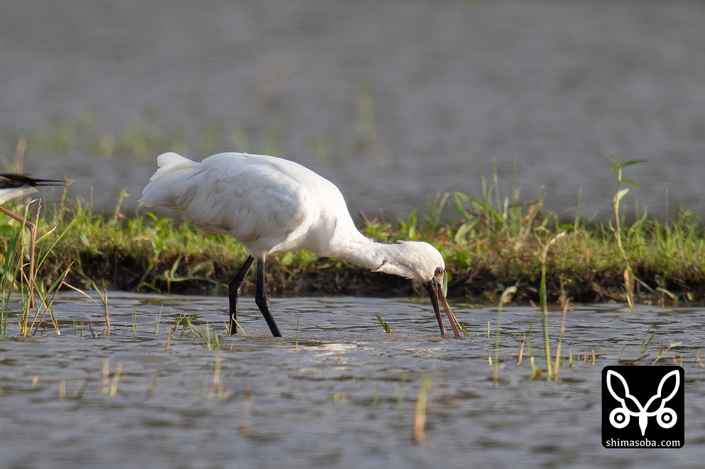 クロツラヘラサギ成鳥。沖縄本島では越夏するので通年見られるクロツラヘラサギですが、石垣島ではこの時期から来年の春まで越冬します。