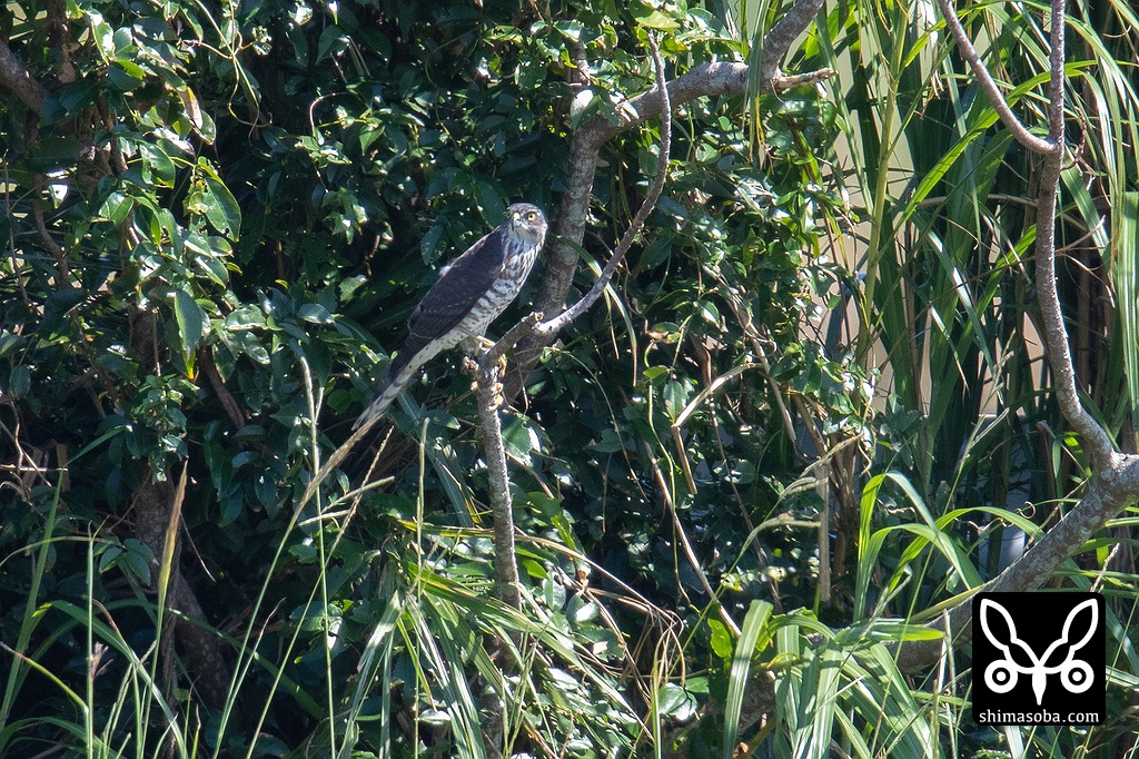 同じ田んぼには、リュウキュウツミの幼鳥が1羽。沖縄本島赴任中、ツミの幼鳥を見慣れていたので下面の太い横斑に違和感を覚え、ミナミツミだったらどうしようとか思っていたのは内緒です…。