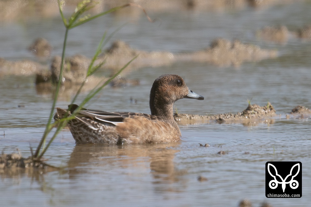 ヒドリガモは数羽の群れ。こちらは幼鳥と思われる個体。