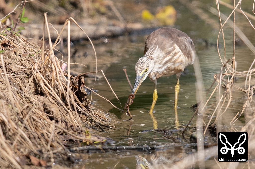いつもの場所でジャワアカガシラサギ。発見当初に比べて行動範囲が狭いです。