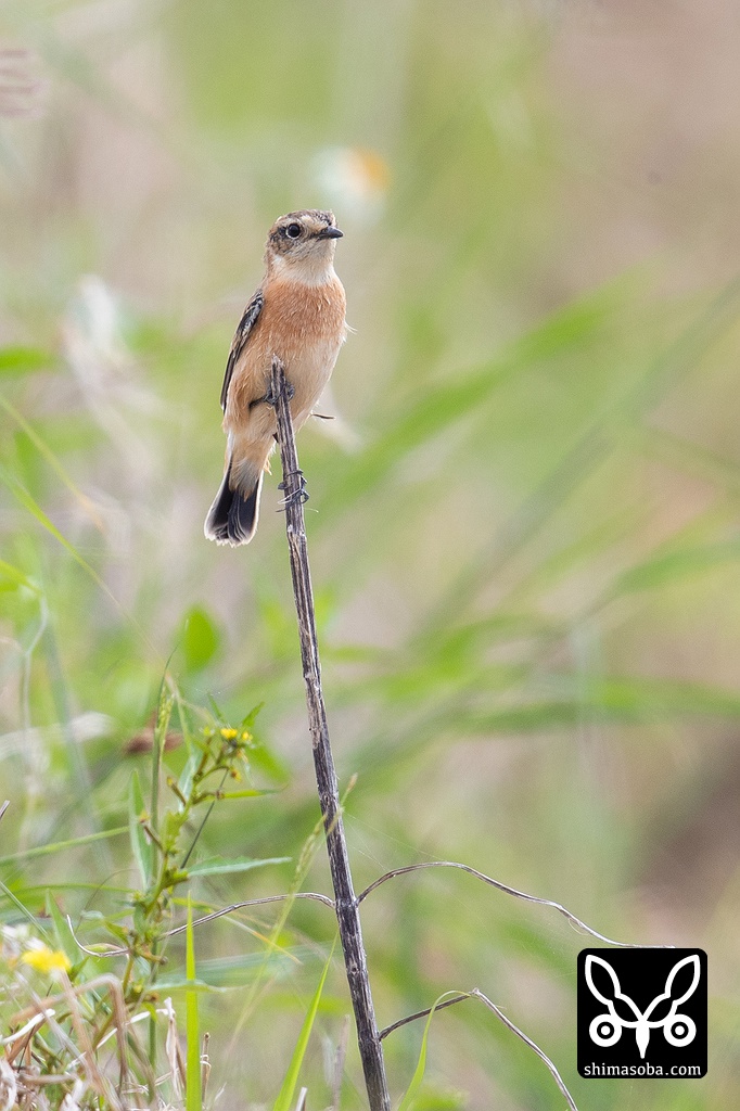 ノビタキが田んぼに飛来していました。2羽いるようですが、警戒心が強く撮影できたのは1羽のみ。