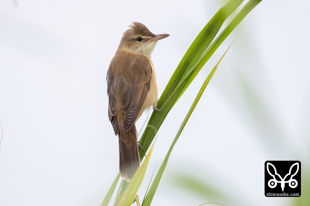 上の個体が止まっているのを押し除けてきたので同じ葉っぱですが別のオオヨシキリ。さらに褐色味が強いように感じます。