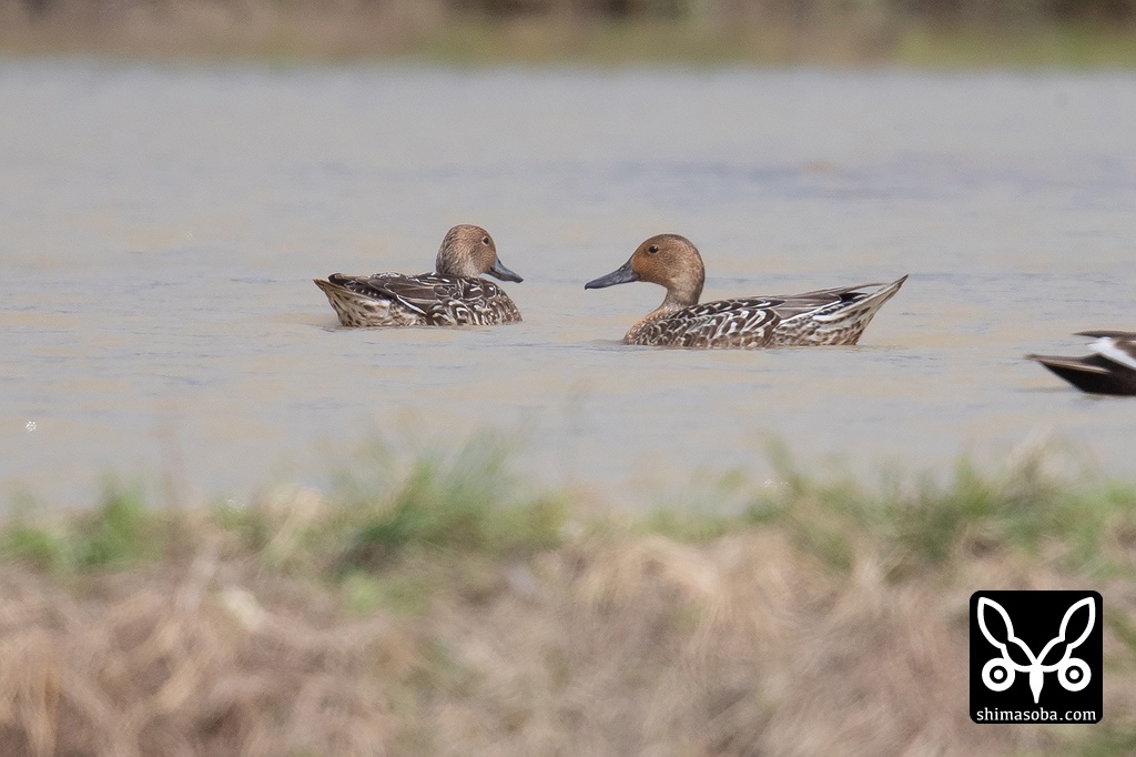 先日のノビタキ はまだ滞在中。水を張った田んぼには、オナガガモやヒドリガモ、コガモ、カルガモが入れ替わりながら滞在。渡ってきては島内で分散しています。