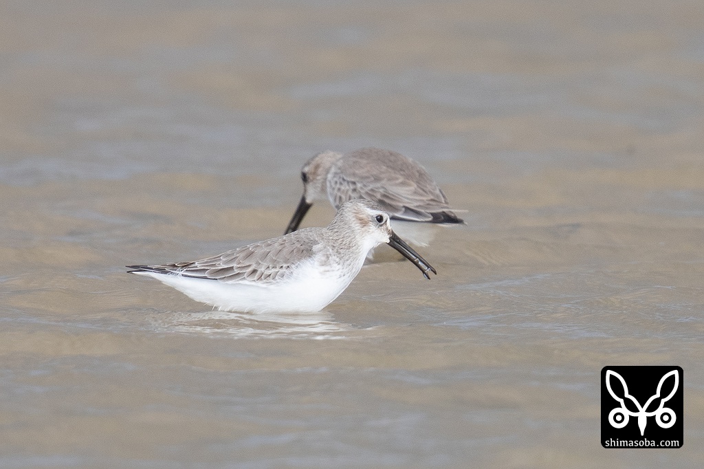 こちらは数十羽と賑やかに越冬モードのハマシギ冬羽。