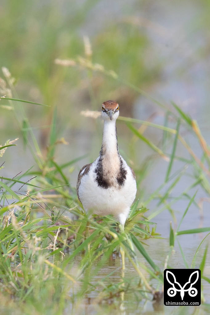 レンカク幼鳥。第1回冬羽へ換羽中です。