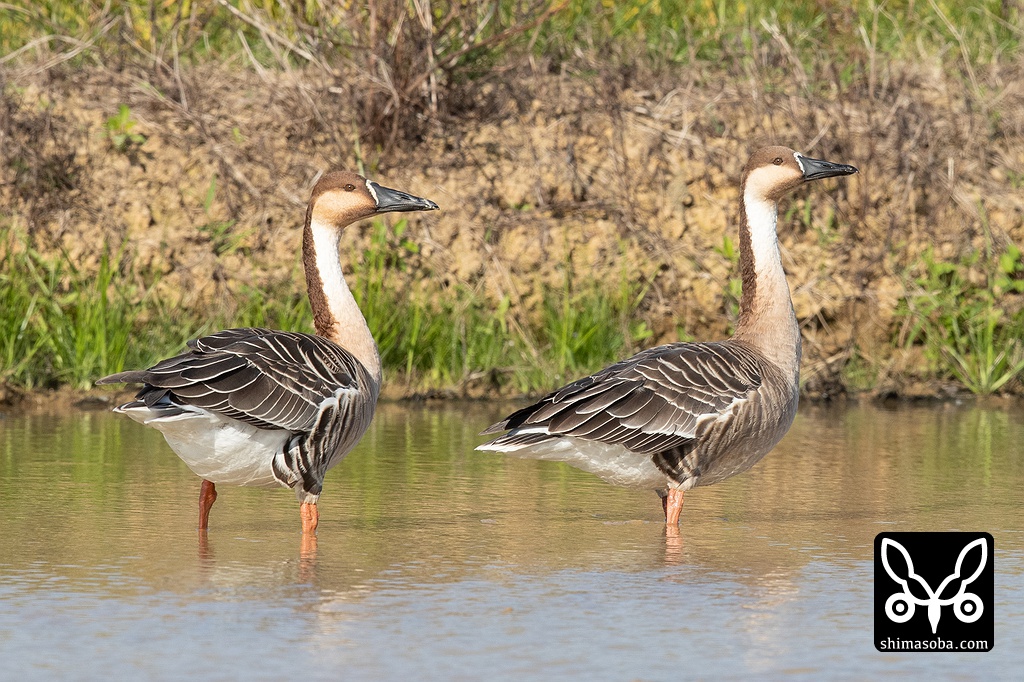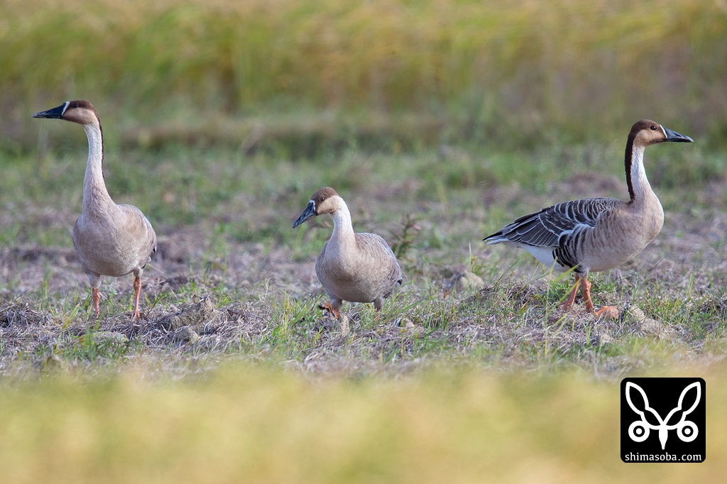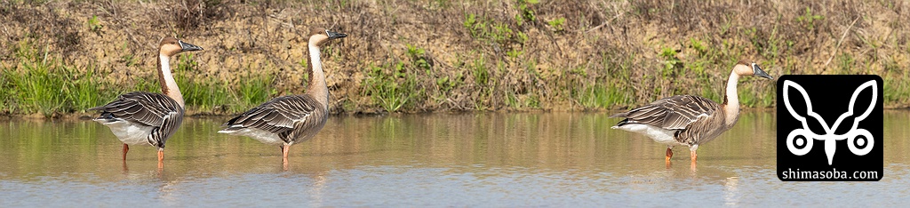 サカツラガン3羽、石垣島に飛来