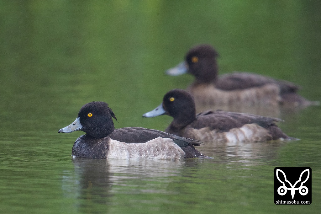 紙面用に沈砂池でキンクロハジロ3羽を撮影。