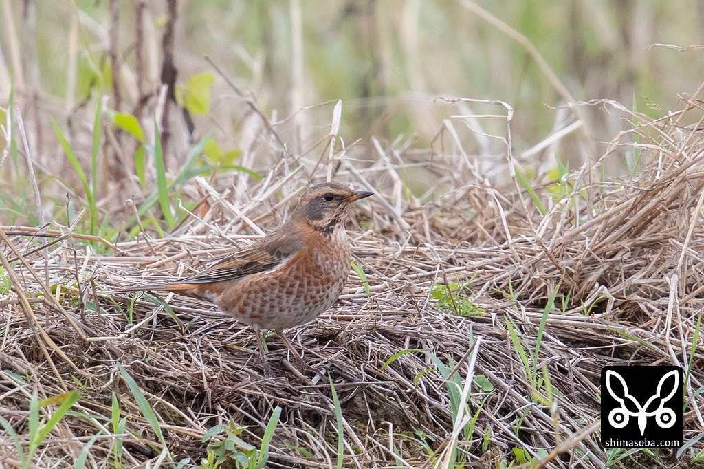 田んぼでベニバト、ハチジョウツグミ、ムネアカタヒバリなど