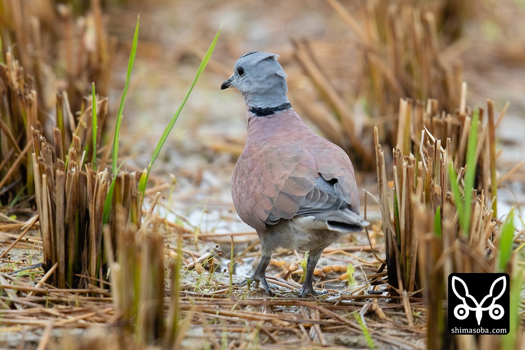 昼休みに田んぼをのぞいてみるとベニバトのオス2羽と幼鳥1羽がいました。今年は例年になくベニバトの多い年です。秋から途絶えることなくあちこちの畑で確認できています。