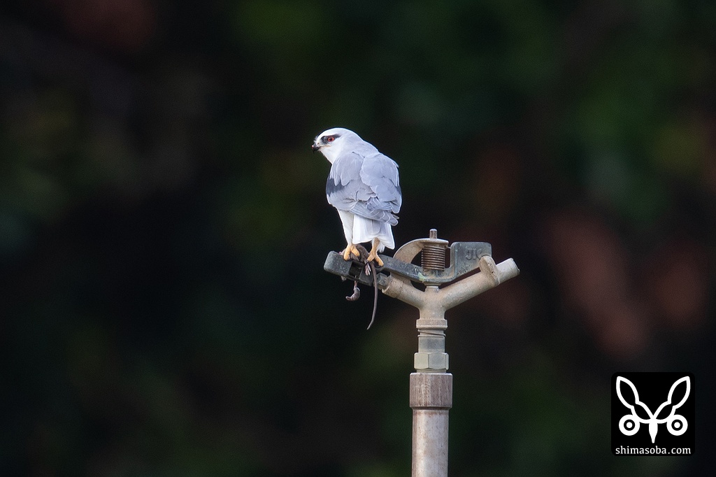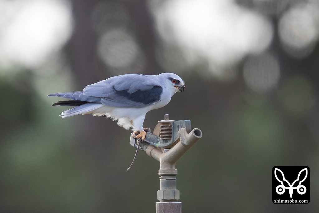 捕まえたネズミを食うカタグロトビ。いつもスプリンクラーの上で食います。