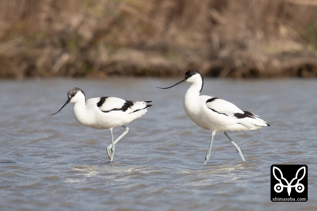 先日、単独で飛来したソリハシセイタカシギ が場所を変えて2羽に数を増やしていました。^^