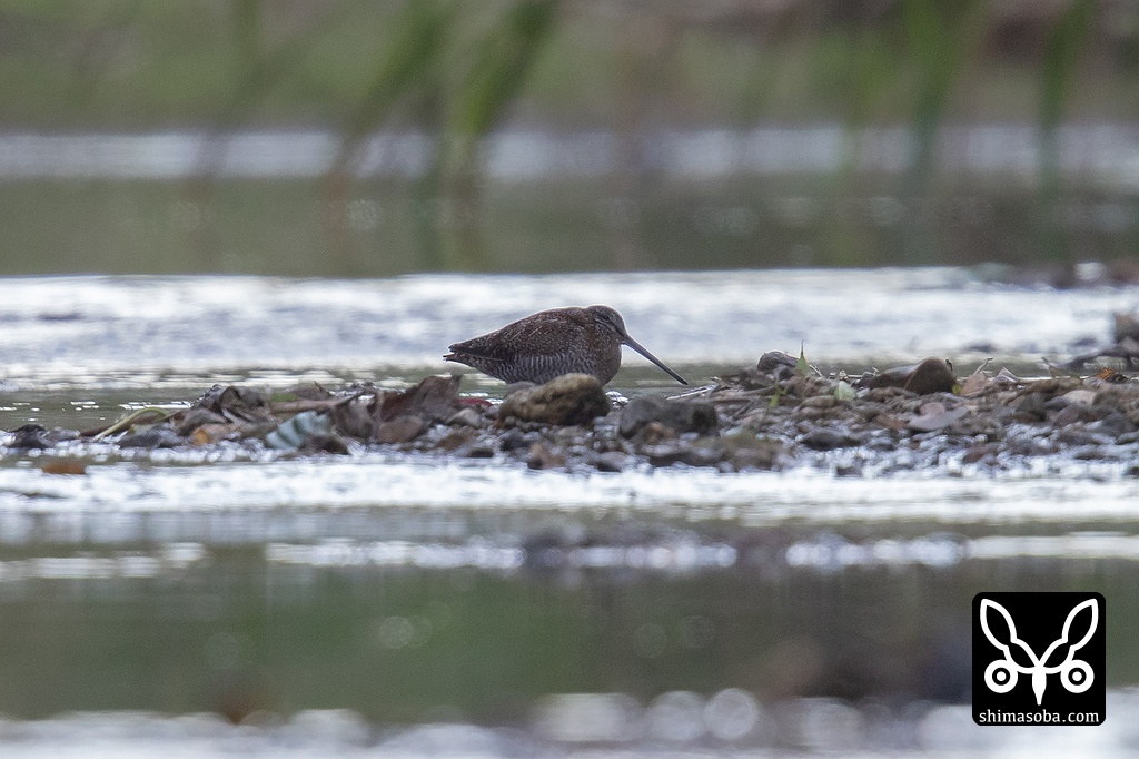 数日前に降り続いた雨で増水し、心配していましたが同じ場所にいたアオシギ。