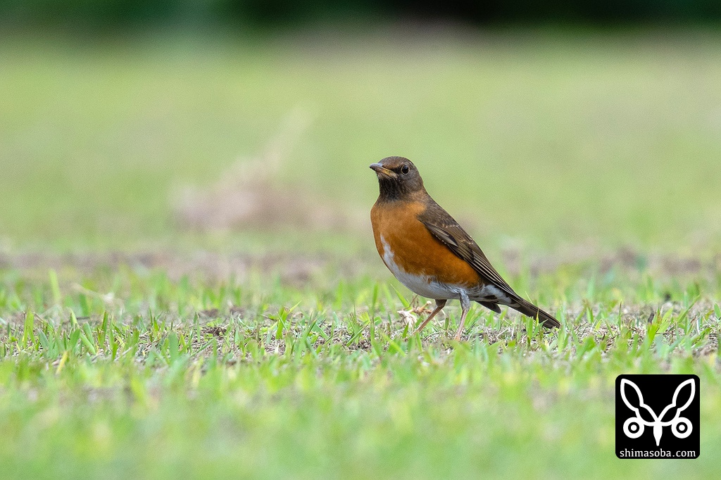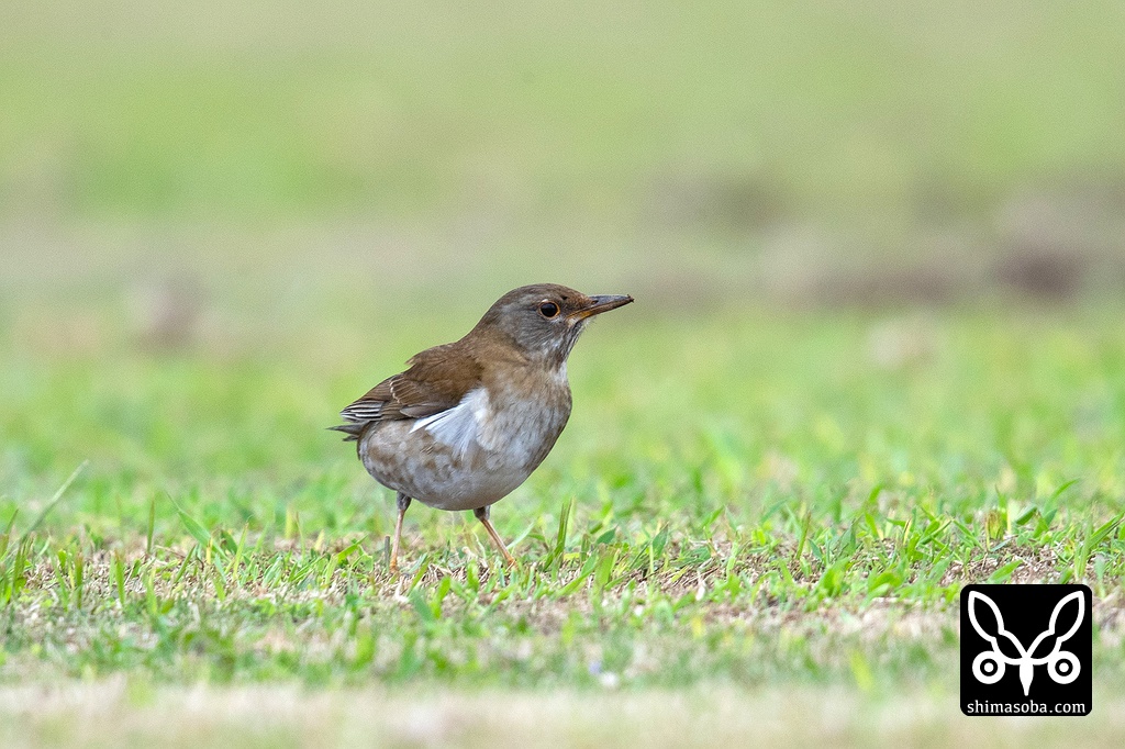 この芝生の中で一番、立場が弱かったのがシロハラ第1回冬羽。アカハラやツグミに追い回されていた。