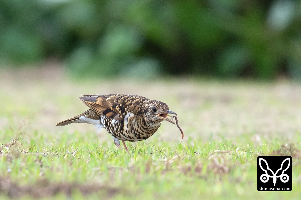 ミミズを捕まえたトラツグミ。トラダンスは披露してくれなかった。