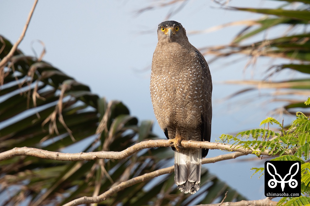 カンムリワシ幼鳥。虹彩が暗色のタイプです。