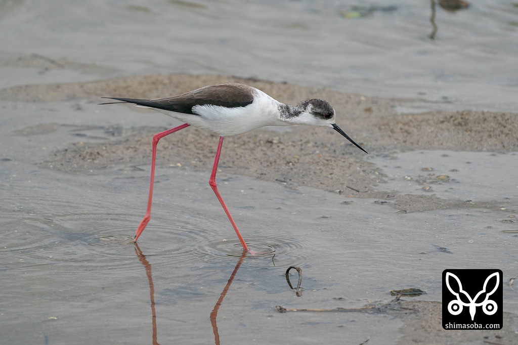 セイタカシギのメス成鳥。こちらは単独での飛来。