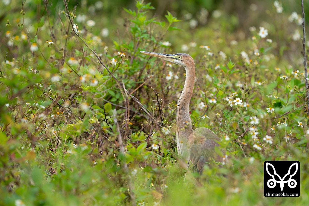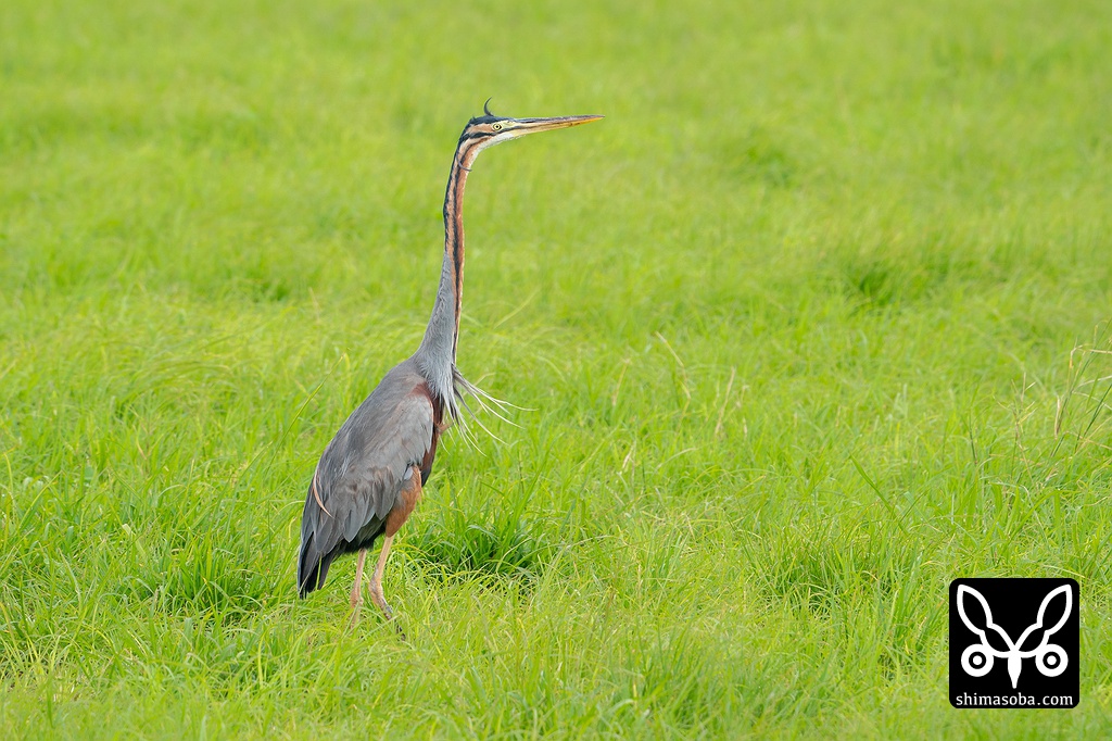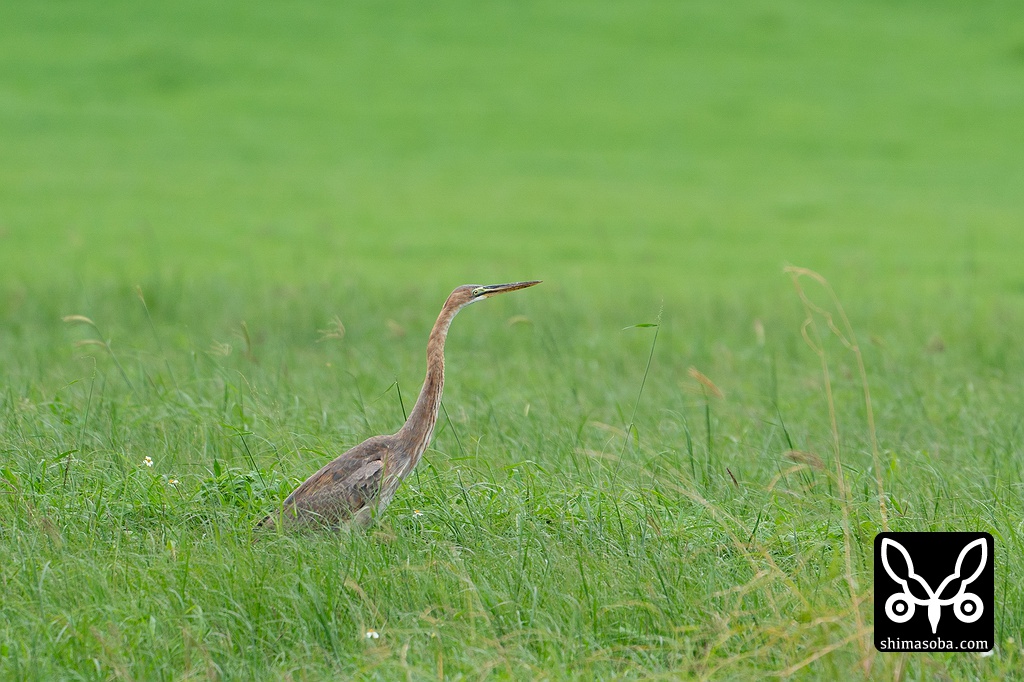 ムラサキサギ成鳥。牧草地や田んぼなどで多くの個体に出会えました。