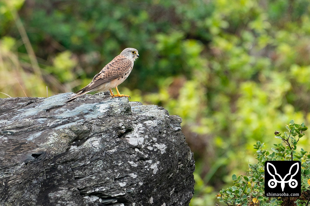 チョウゲンボウの若いオス。雨覆に幼羽が多く残っていますので第1回夏羽でいいのかな。