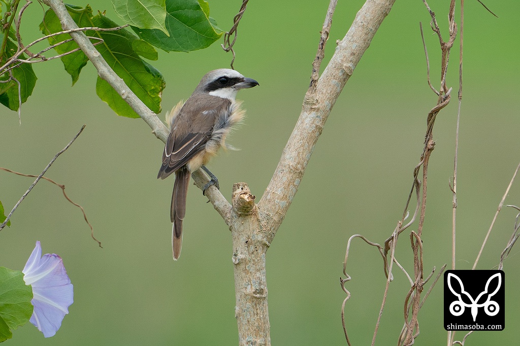 シマアカモズの成鳥オス。換羽が進んでぼろぼろですね。