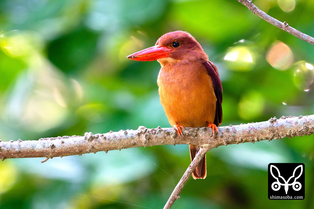 車内で待っていると目の前の枝に美しいアカショウビンが止まった!!