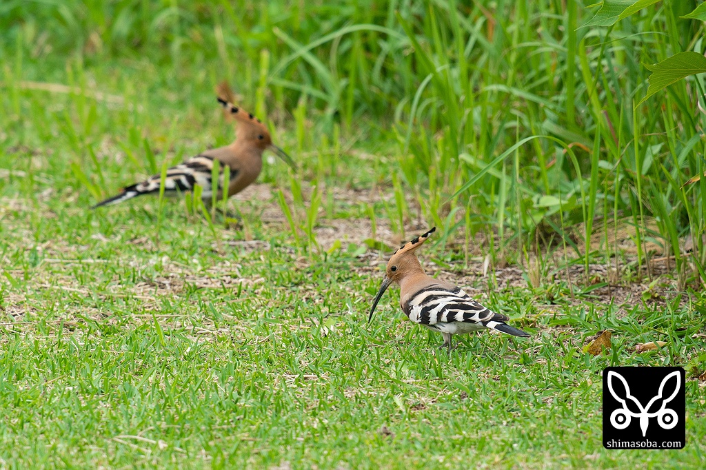 こちらは2羽で採餌するヤツガシラ。