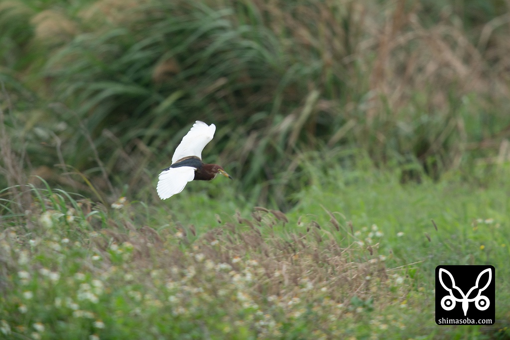サギの大群を観察していたらいきなり現れたアカガシラサギ。美しい夏羽です。慌てて撮ってブレちゃいました…。島内には合わせて3羽のアカガシラサギが飛来しました。